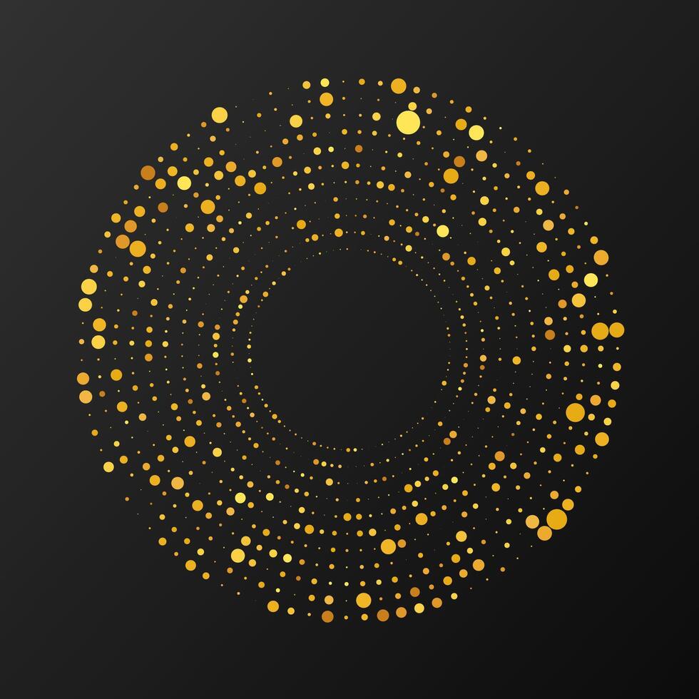 Abstract glowing halftone dotted background. Gold glitter pattern in circle form. Circle halftone dots. illustration Pro Vector