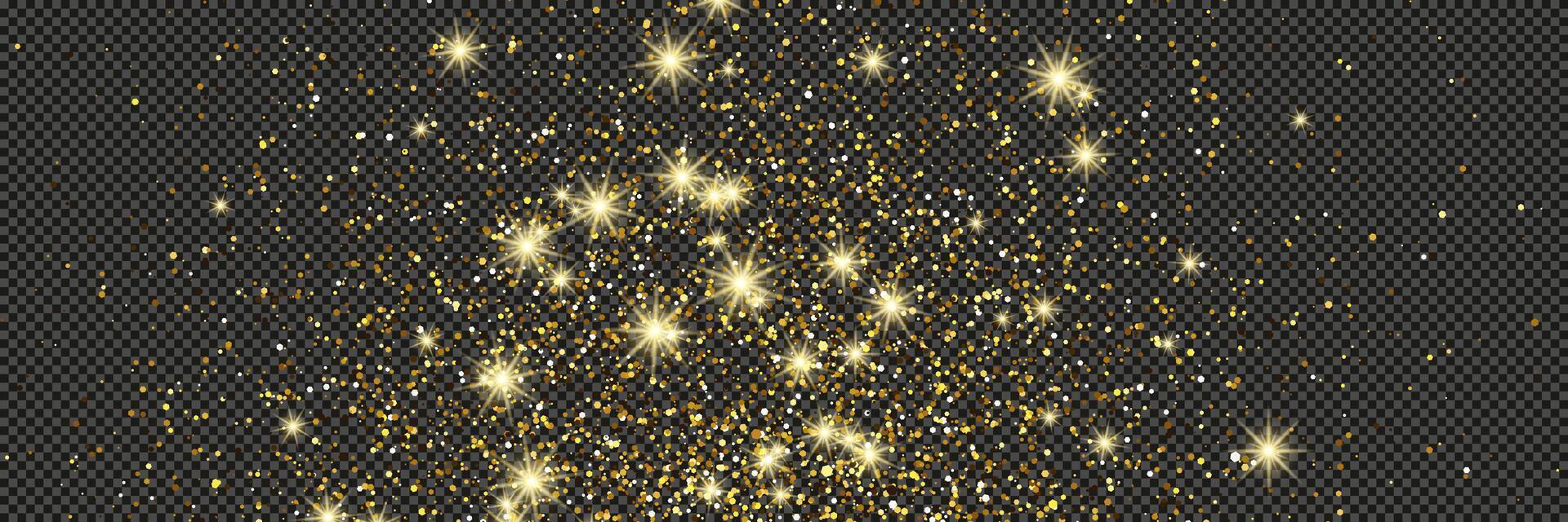 Gold glittering with stars on a gray background. Dust with gold glitter effect and empty space for your text Pro Vector