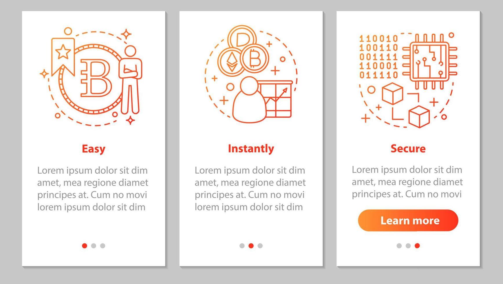 Mining business onboarding mobile app page screen with linear concepts. Cryptocurrency. Easy, instantly, secure steps graphic instructions. UX, UI, GUI vector template with illustrations Pro Vector