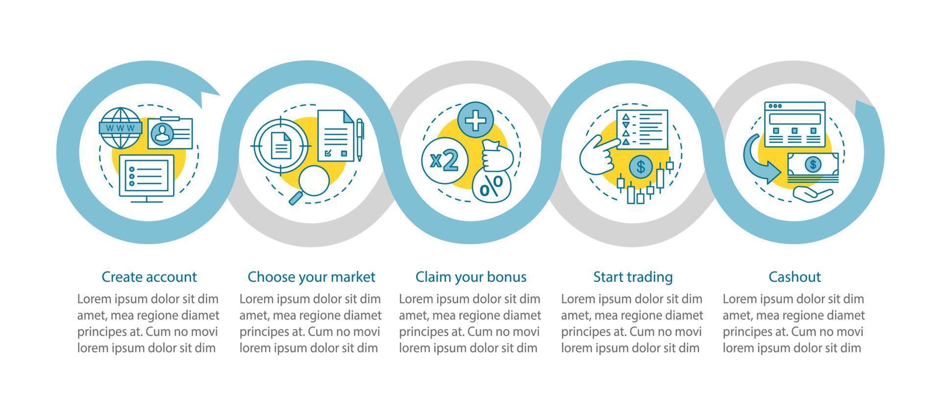 Internet trading vector infographic template. Online business. Data visualization with five steps and options. Process timeline chart. Workflow layout Pro Vector