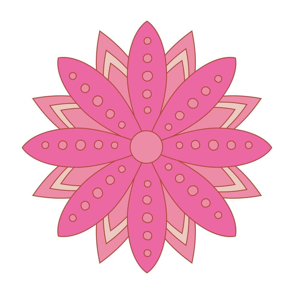 Decorative pink boho flower on white background, a botanical design with intricate patterns. Ideal for summer-themed graphics. Pro Vector