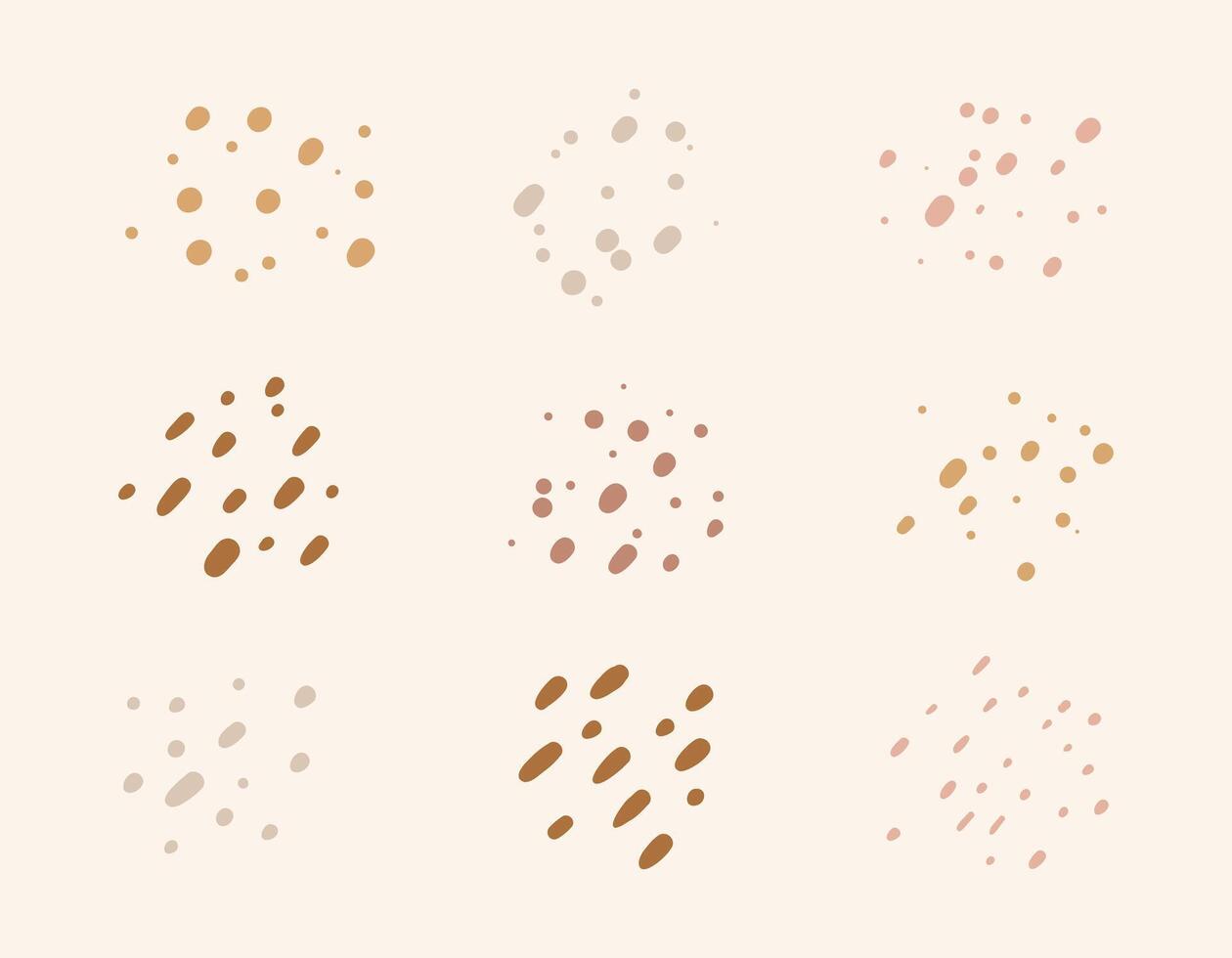 Hand Drawn Abstract Dot Patterns Collection. A set of 9 hand-drawn abstract dot patterns in earthy tones, perfect for adding texture and creativity to backgrounds or design projects Pro Vector