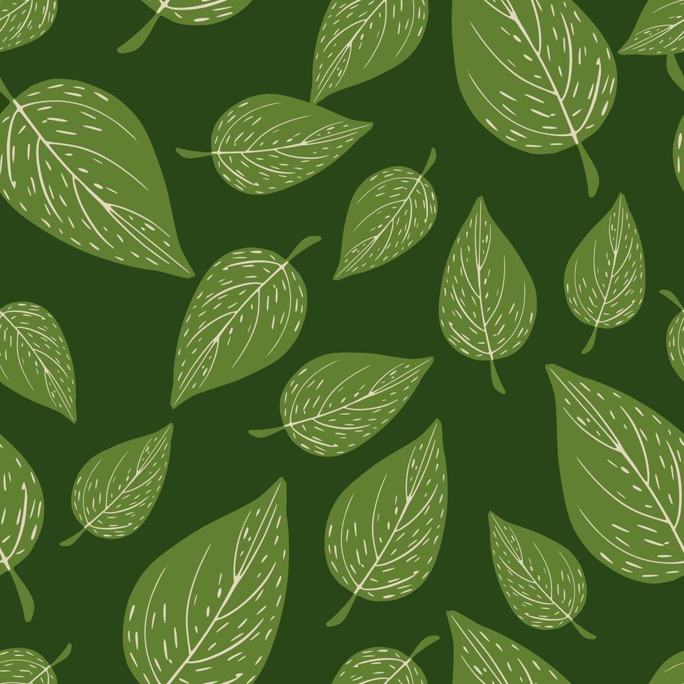 Spring nature seamless pattern with random green leaf silhouettes. Botanic backdrop. Pro Vector