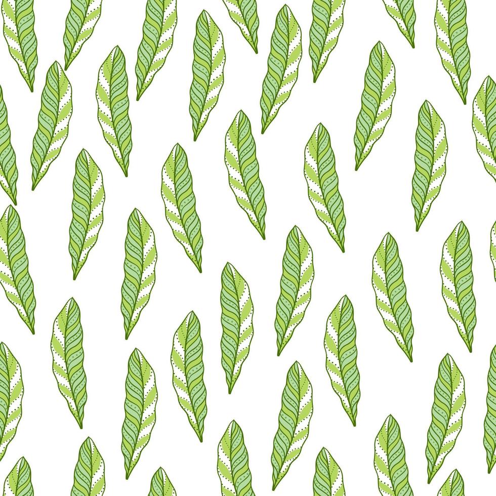 Isolated seamless pattern with little green random abstract leaf elements. White background. Bloom print. Pro Vector