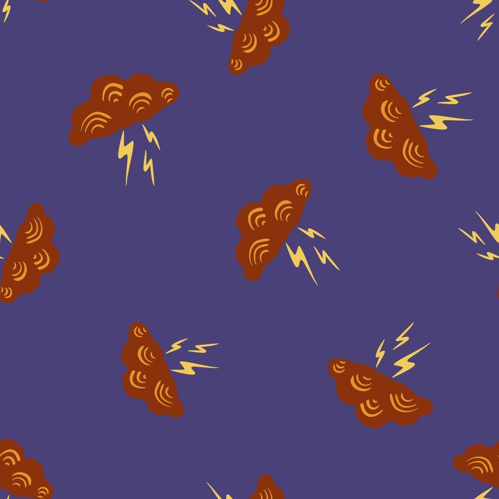 Clouds with lightning of seamless pattern. Cute hand drawn background. Pro Vector