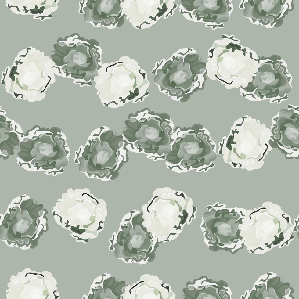 Seamless pattern Butterhead salad on gray background. Abstract ornament with lettuce. Pro Vector