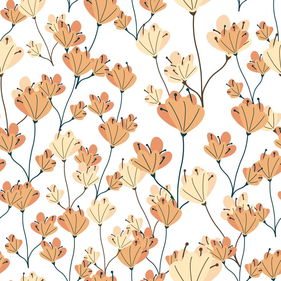 Spring nature seamless pattern with orange random doodle flowers elements. White background. Simple print. Pro Vector
