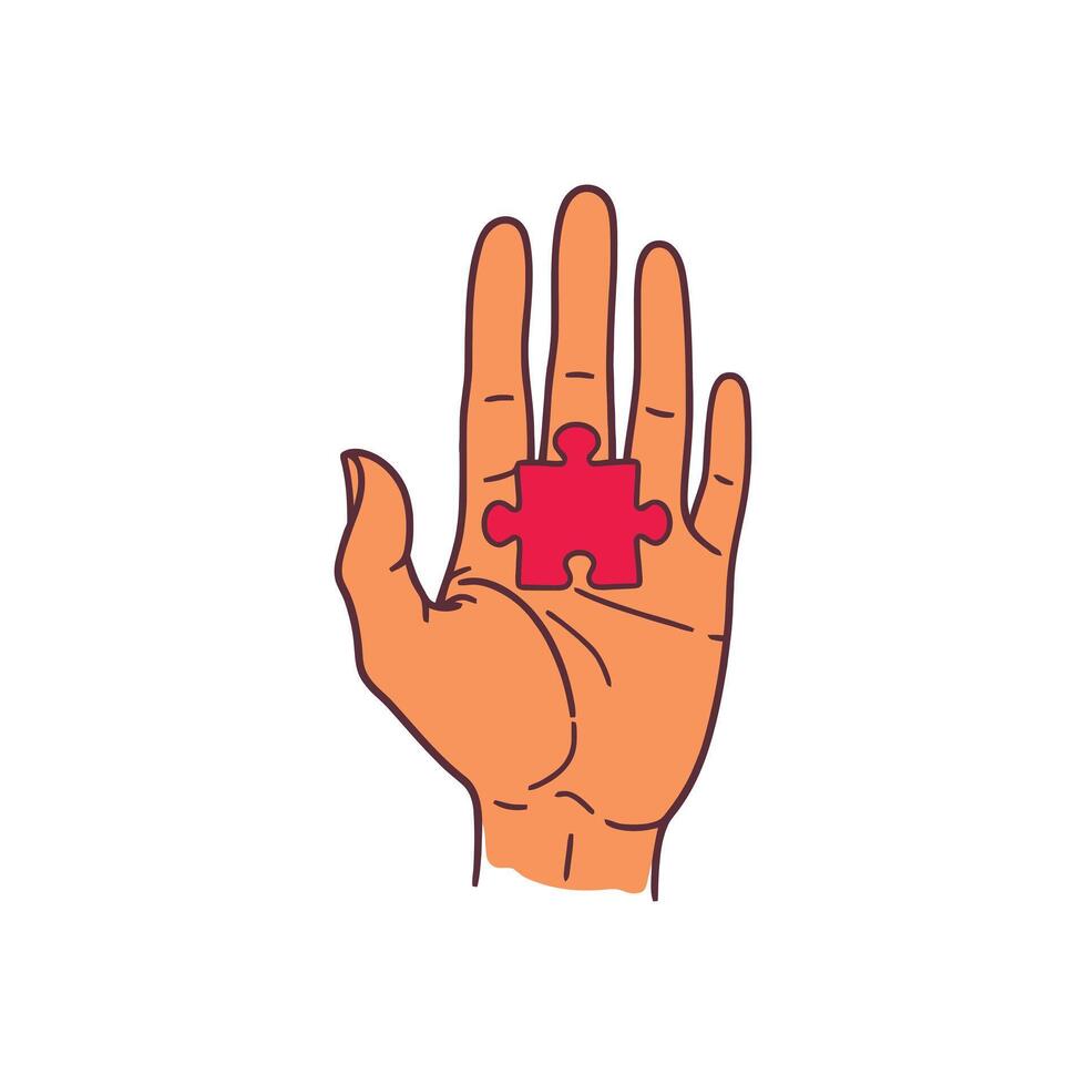Missing Piece Hand Showing Red Jigsaw Element. Collaboration, Strategy, Teamwork Symbol. Flat Design Pro Vector