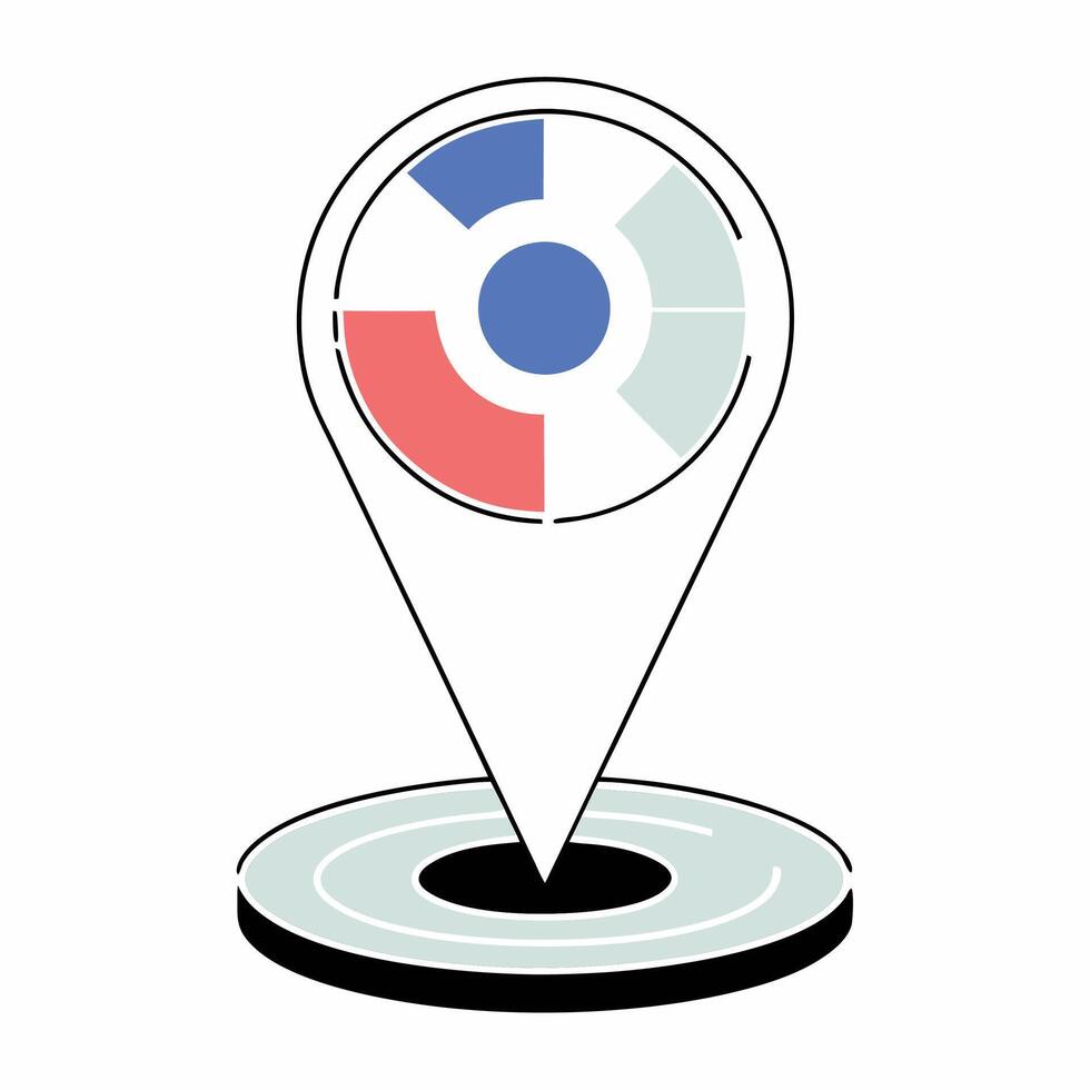 Minimalist Location Pin with Data Chart Blue, Red. Pro Vector