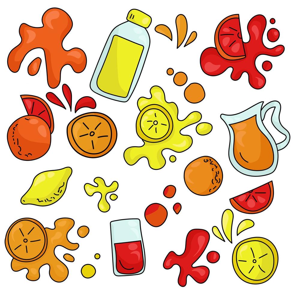A set of citrus fruits in the form of slices, juice and whole, orange ruiprut and lemon in various versions for design Pro Vector