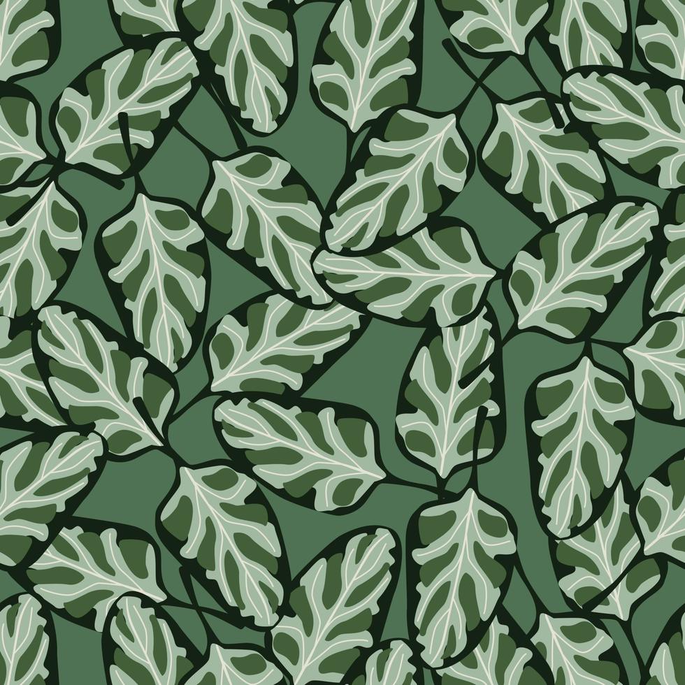 Seamless pattern Spinach salad on teal background. Abstract ornament with lettuce. Pro Vector