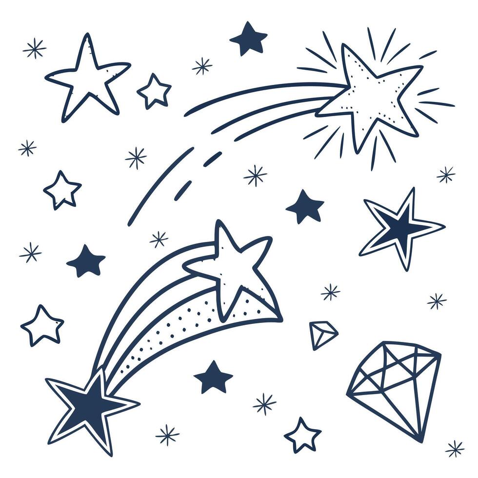 delightful collection of various star and sparkle doodles scattered whimsically across the image Pro Vector