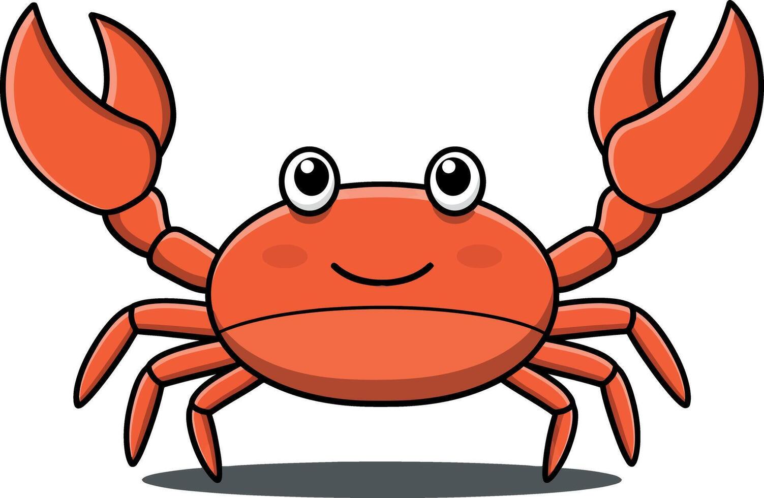 Cartoon-style red crab with large claws, cheerful expression, and simple background, showcasing a playful mood in illustration Pro Vector