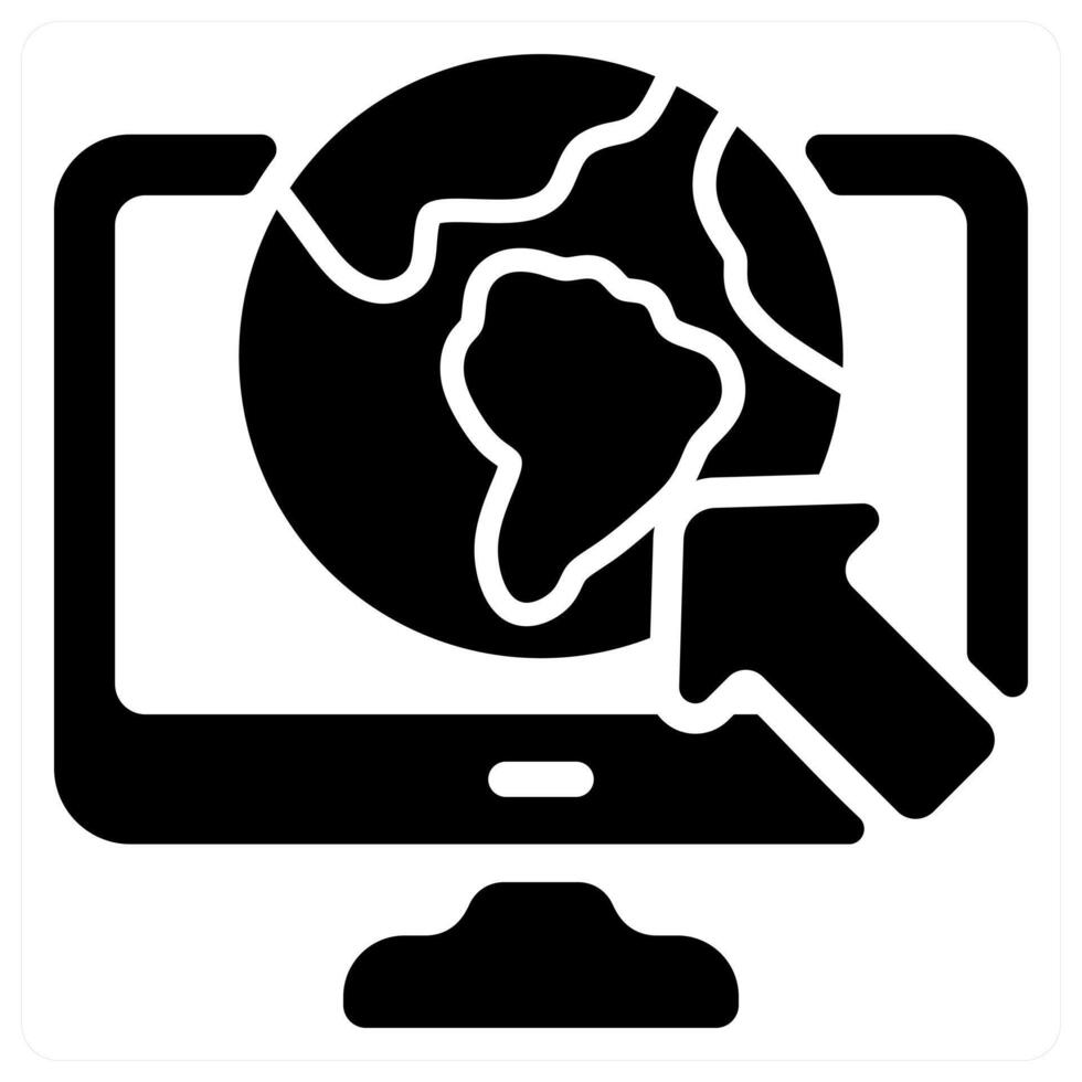 A computer monitor with an arrow pointing to the earth Pro Vector
