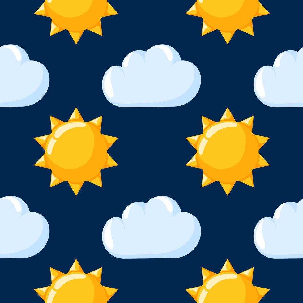 Cloud with sun seamless pattern in cartoon style. Hand drawn weather, forecast background. Design for nursery wallpaper, wrapping. Pro Vector