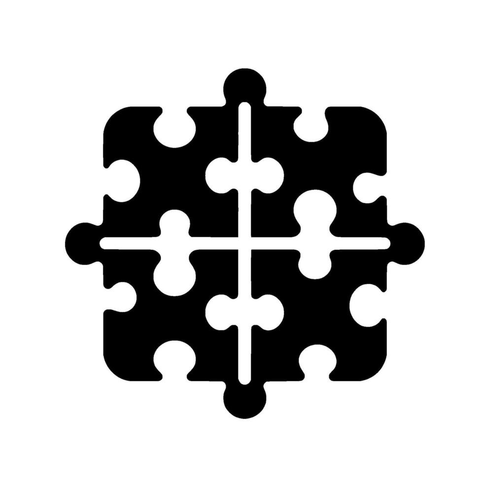 Abstract Black and White Jigsaw Puzzle Interlocking Pieces Forming Square, Isolated on White, Symbolic of Problem Solving and Unity. vector