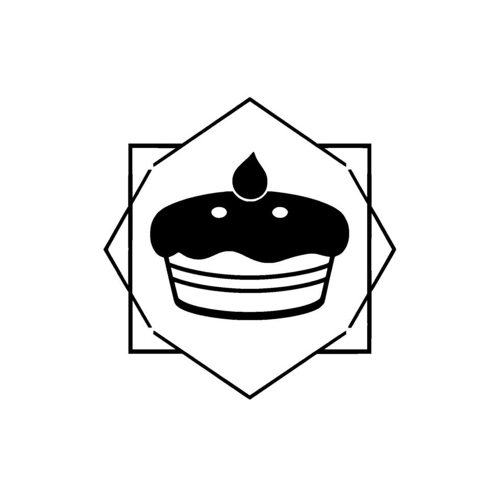 Black and white cake within a square and diamondshaped frame, featuring a droplike topping and simple, modern . vector