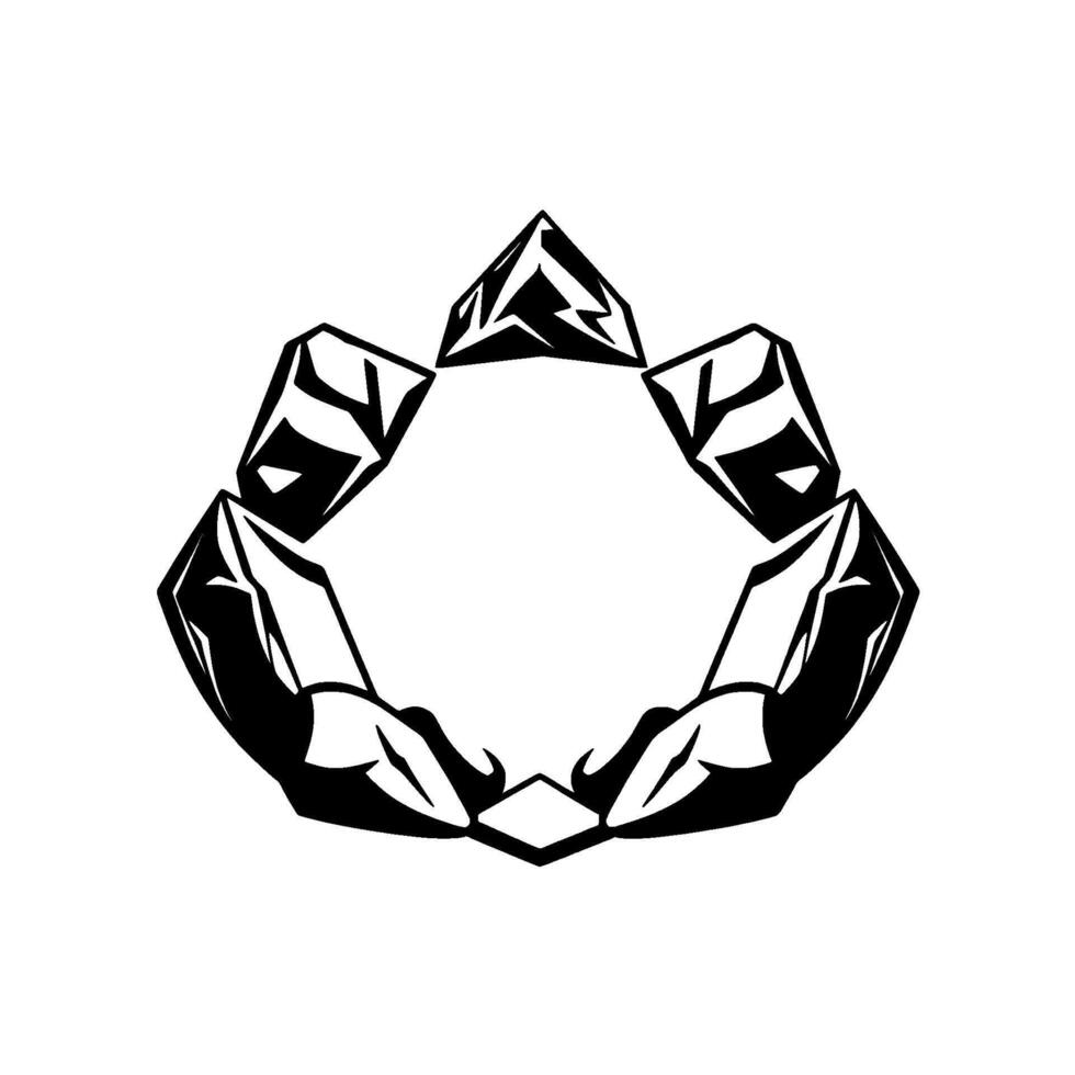 Black and white illustration of a stylized, geometric, crownlike shape composed of angular, crystalline forms, suggesting a powerful, abstract emblem or . Pro Vector