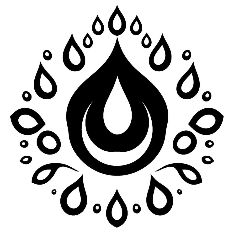 Symmetrical black and white featuring a stylized drop with surrounding droplet and circle pattern, evoking a clean, modern aesthetic. Pro Vector
