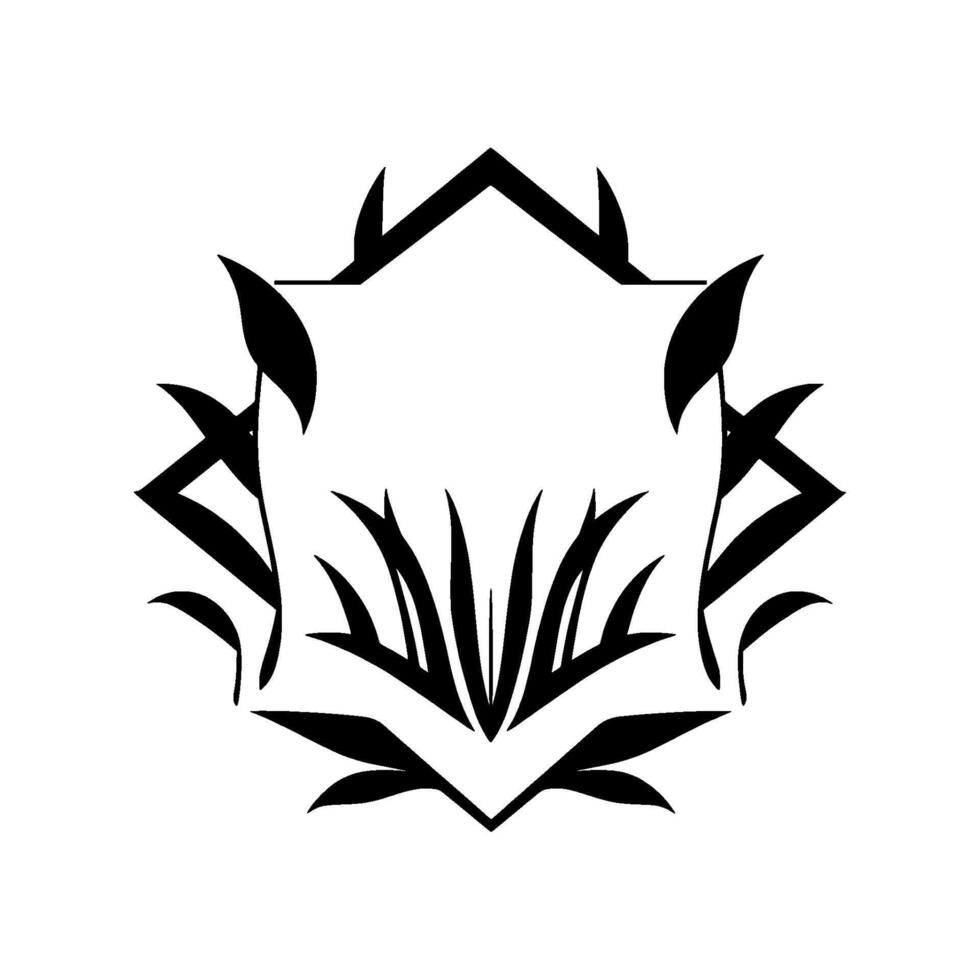 Elegant Geometric Black and White symmetrical ornamental featuring stylized leaves and sharp angular shapes within a central open framework. vector
