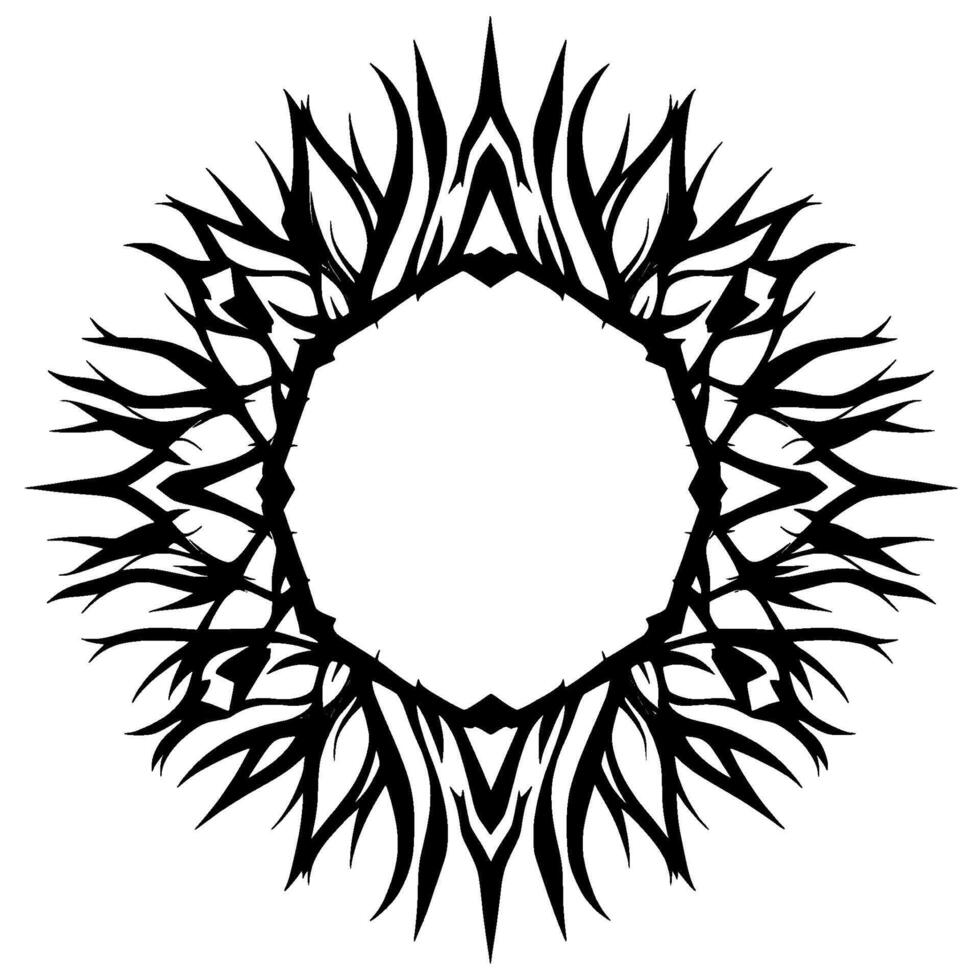Intricate Black White Geometric Circular Ornamental with Sharp, Angular, and Branchlike Elements Around a White Empty Center vector