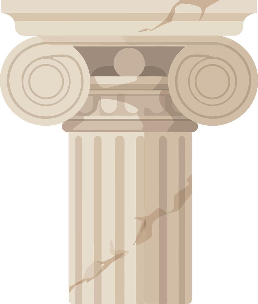 Classical Greek column design featuring intricate scrollwork and textured details in a minimal style, showcasing elegance and strength in illustration Pro Vector