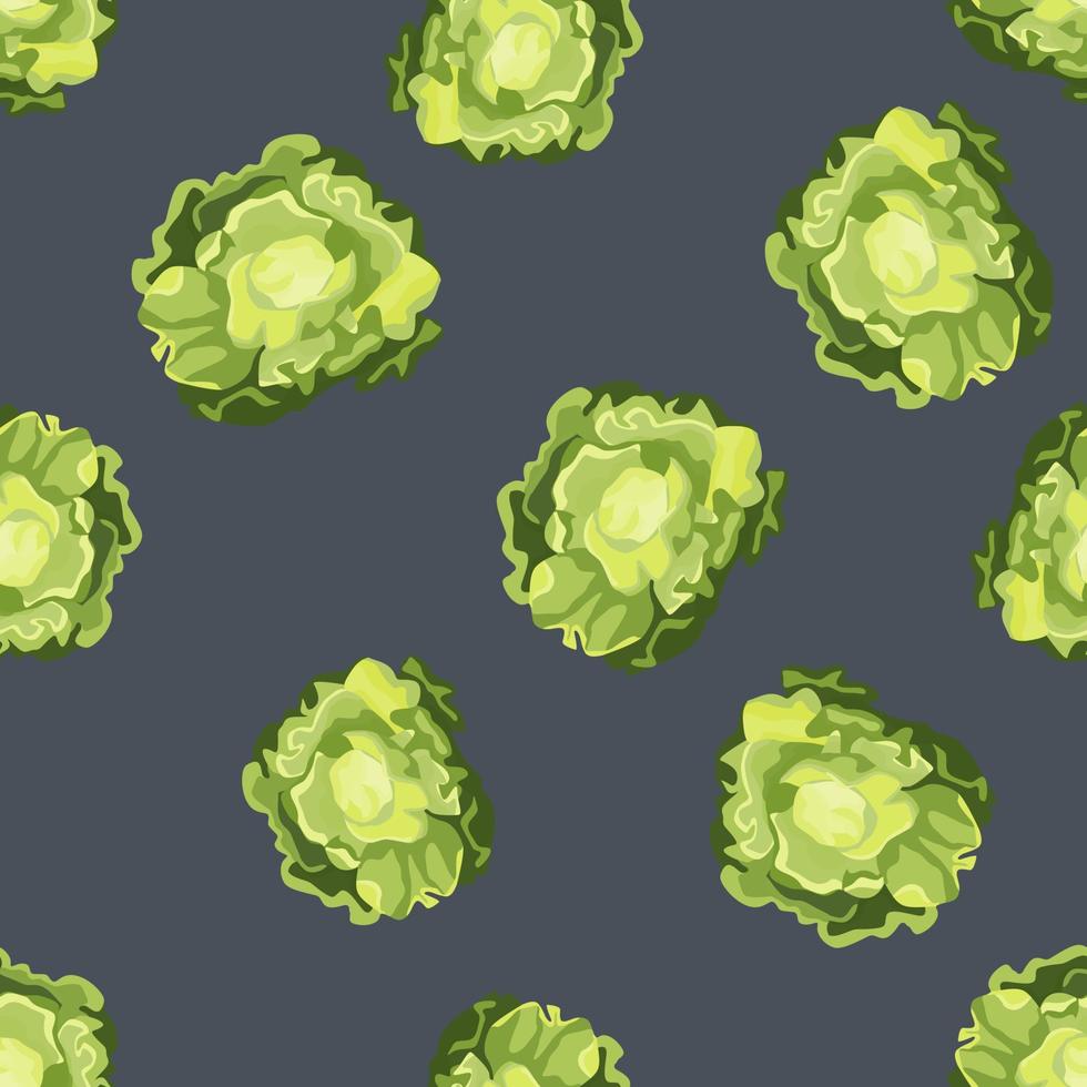 Seamless pattern Butterhead salad on gray background. Simple ornament with lettuce. Pro Vector
