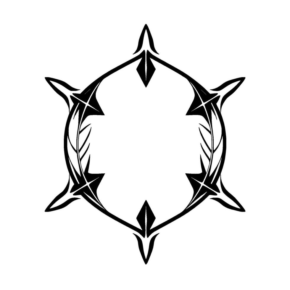Geometric stylized emblem in black with sharp points and a circular structure incorporating leaflike elements on white background. Pro Vector