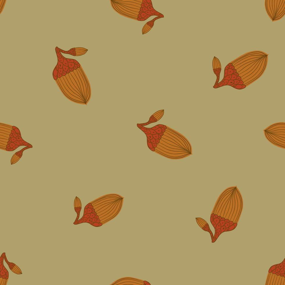 Fall season botanic seamless pattern with random acorn silhouettes. Pale green background. Simple print. Pro Vector