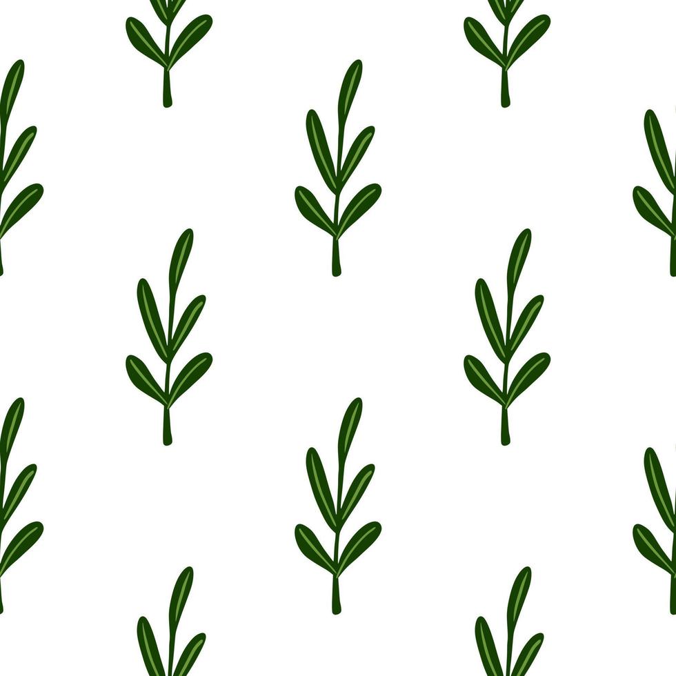Botanic minimalistic seamless pattern with green simple leaf branches ornament. White background. Pro Vector