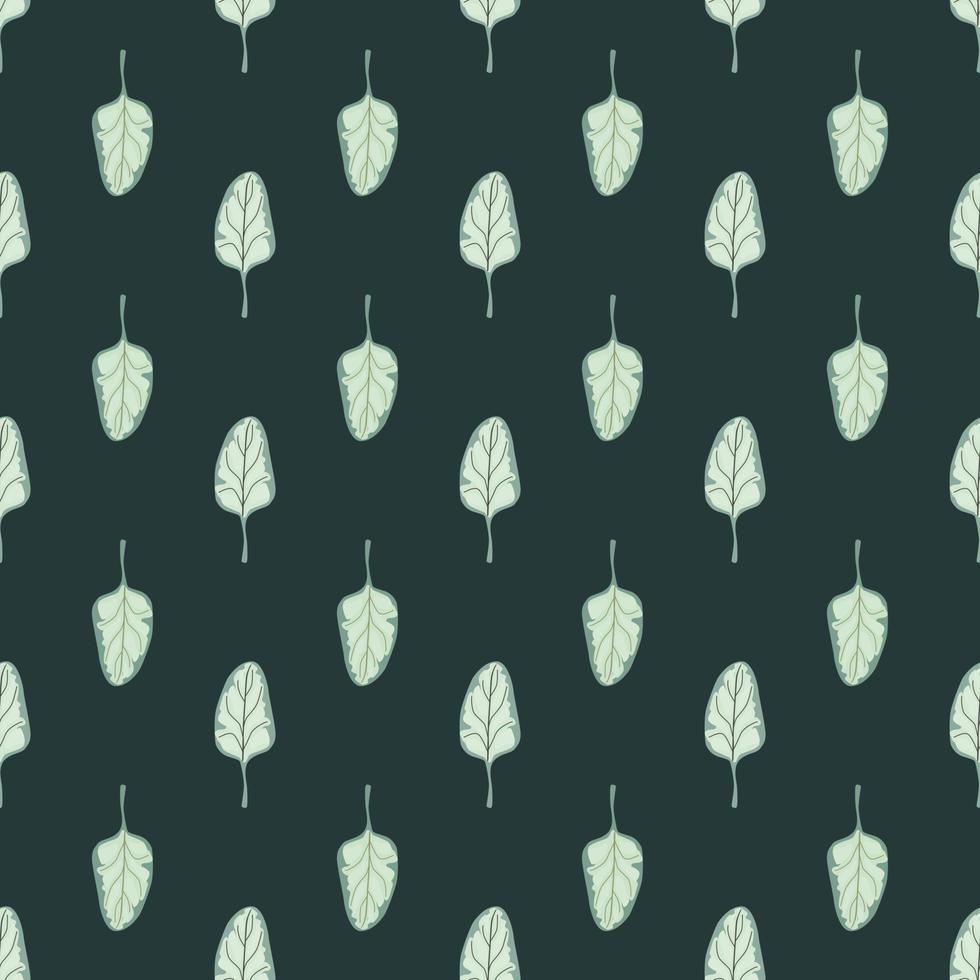 Seamless pattern Spinach salad on dark teal background. Minimalistic ornament with lettuce. Pro Vector