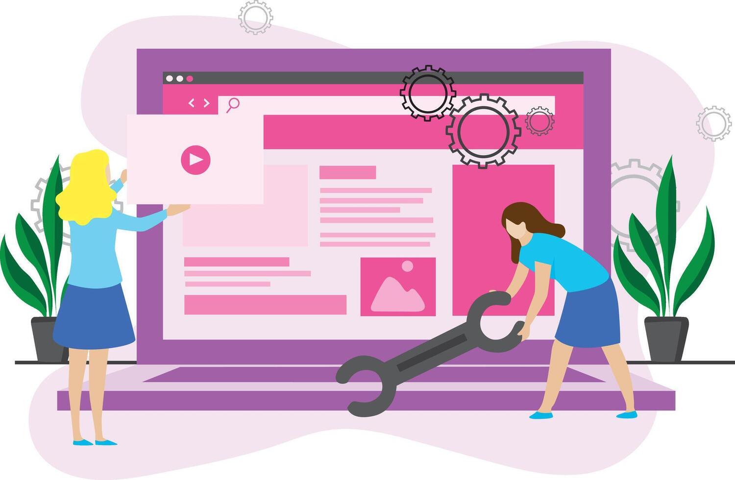 Team Developing Website Flat Design Illustration, Website Developer Pro Vector