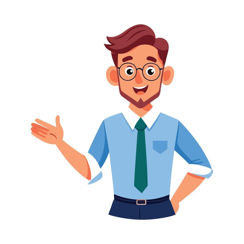Educator Using Open Palm Gesture to Explain Pro Vector