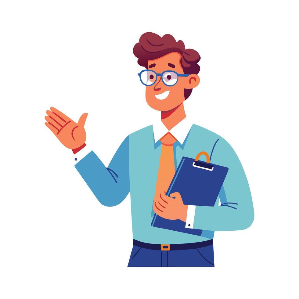 Educator Explaining with Clipboard in Hand Pro Vector