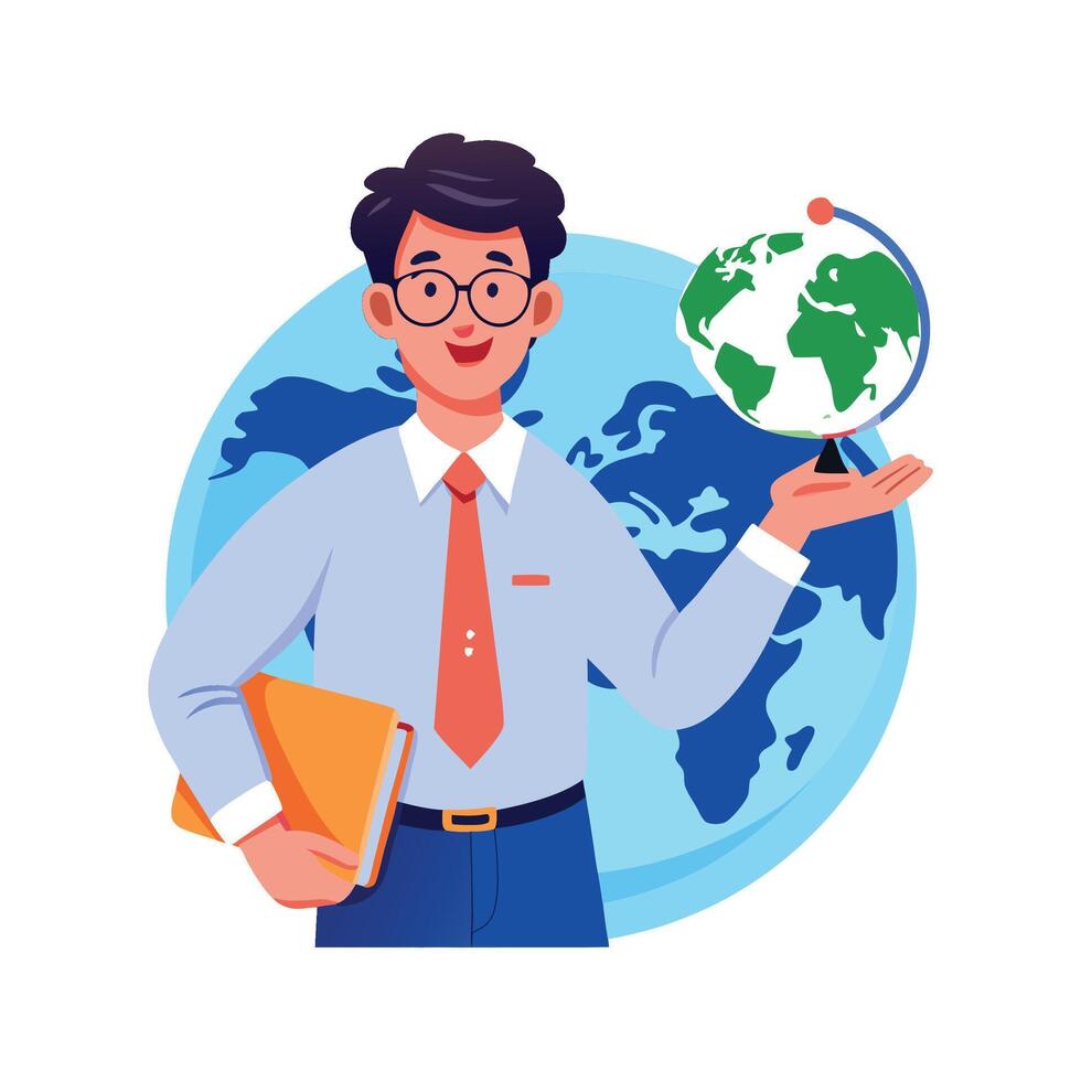 Dynamic Educator Using Globe for Geography Lessons Pro Vector