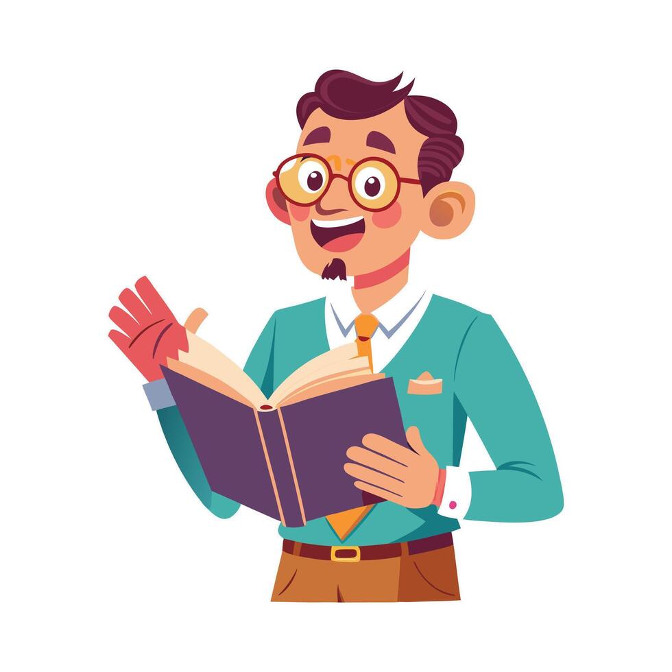 Dynamic Educator Using History Book for Class Discussion Pro Vector