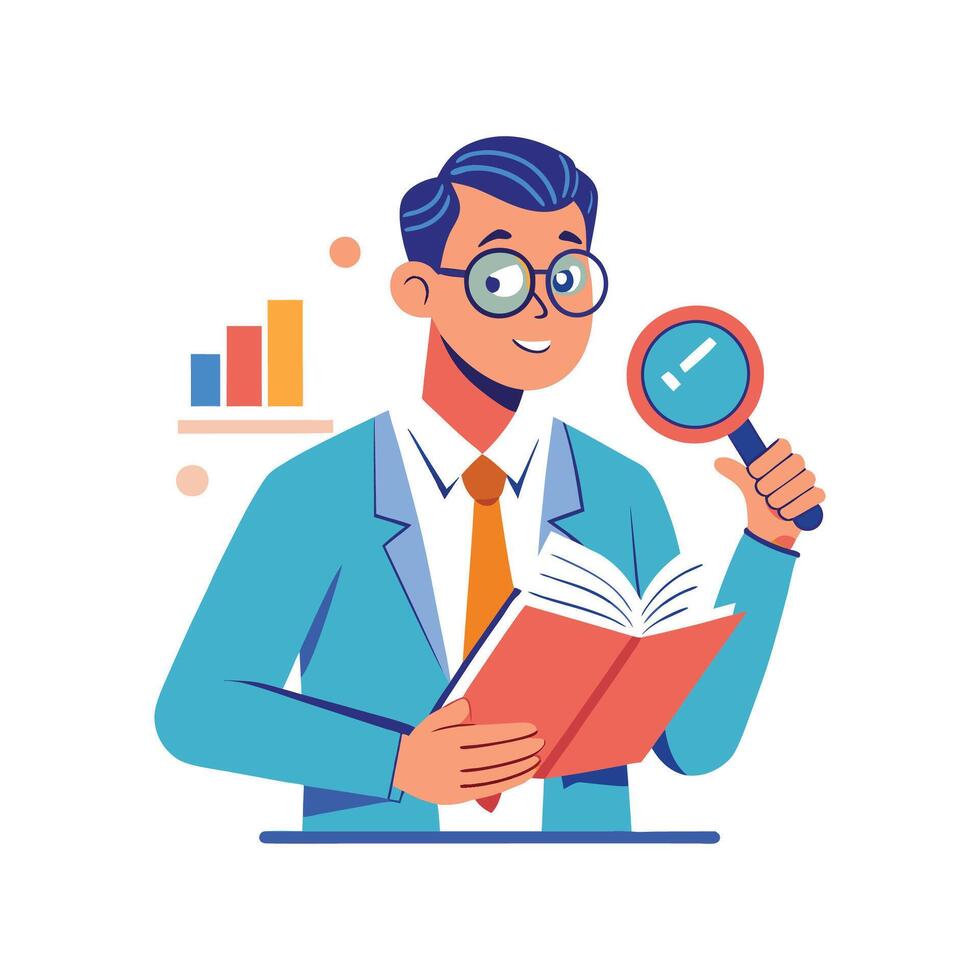 Dynamic Educator Using Magnifying Glass for Teaching Pro Vector