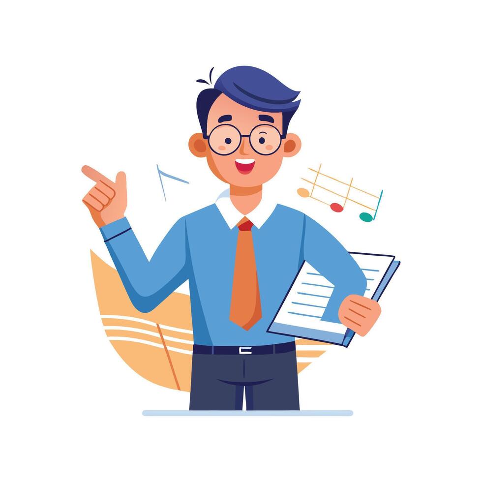 Dynamic Educator Using Music Note Chart in Class Pro Vector