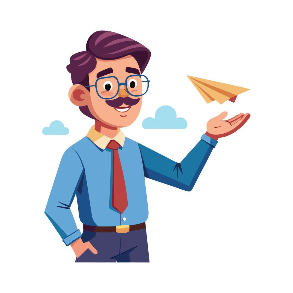 Dynamic Educator Showcasing Paper Plane in Class Pro Vector