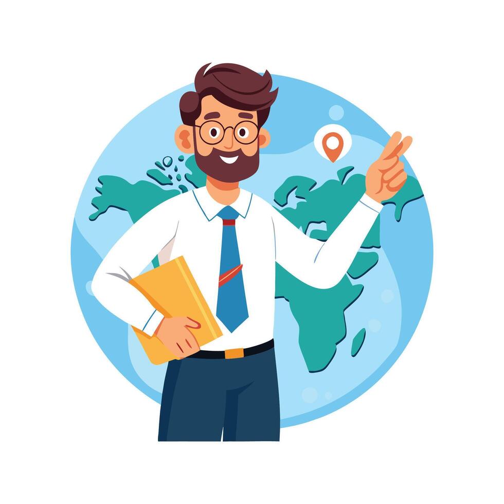 Dynamic Educator Showcasing Paper Map in Class Pro Vector