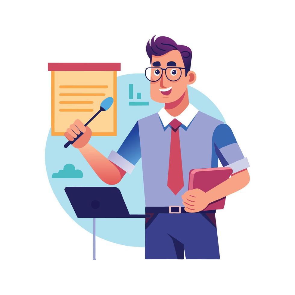 Teacher Using Projector Remote for Presentation Pro Vector