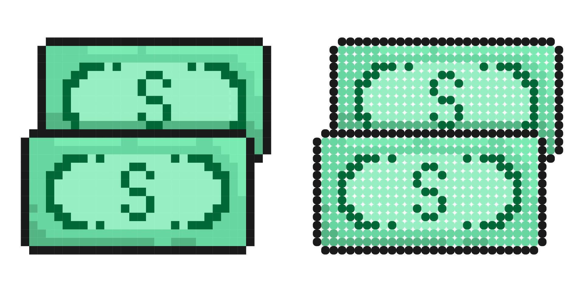 Pixel icon. Bundle of dollars. Saving money and using cash. Simple retro game image isolated on white background Pro Vector