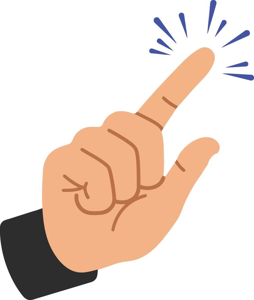 A raised hand with a pointed finger emphasizing an idea in a flat illustration, showcasing engagement and communication in a simplistic design style art Pro Vector