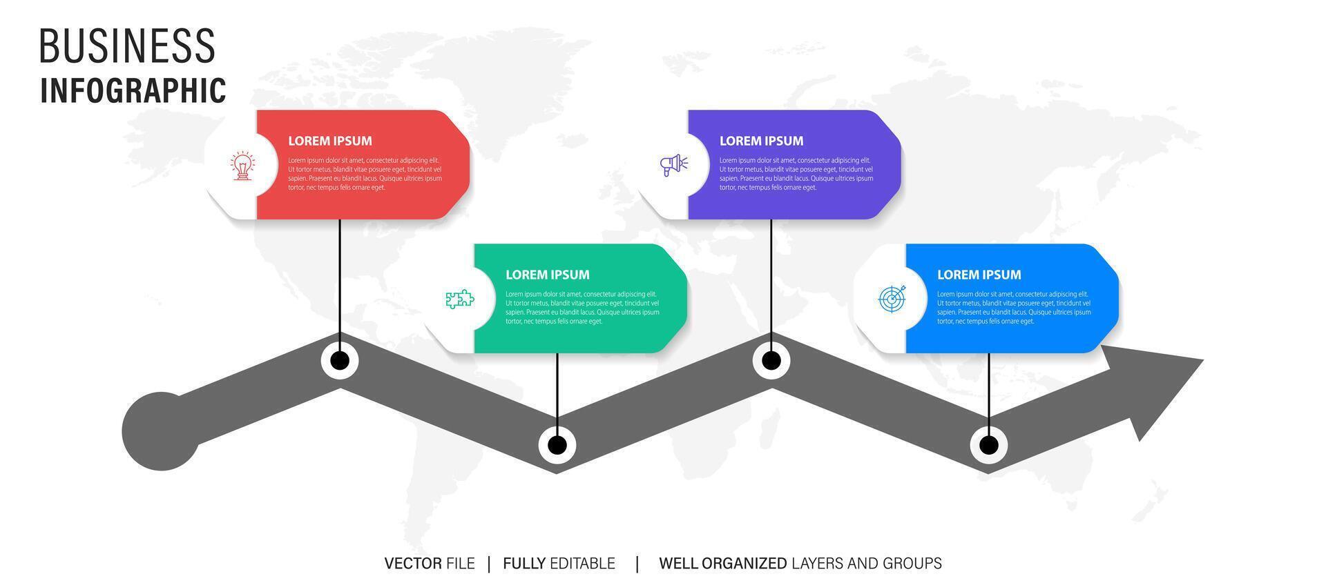 Line step infographic. 4 options workflow diagram, circle timeline number infograph, process steps chart. Linear vector infographics. Process order infographic arrow and steps point illustration Free Vector