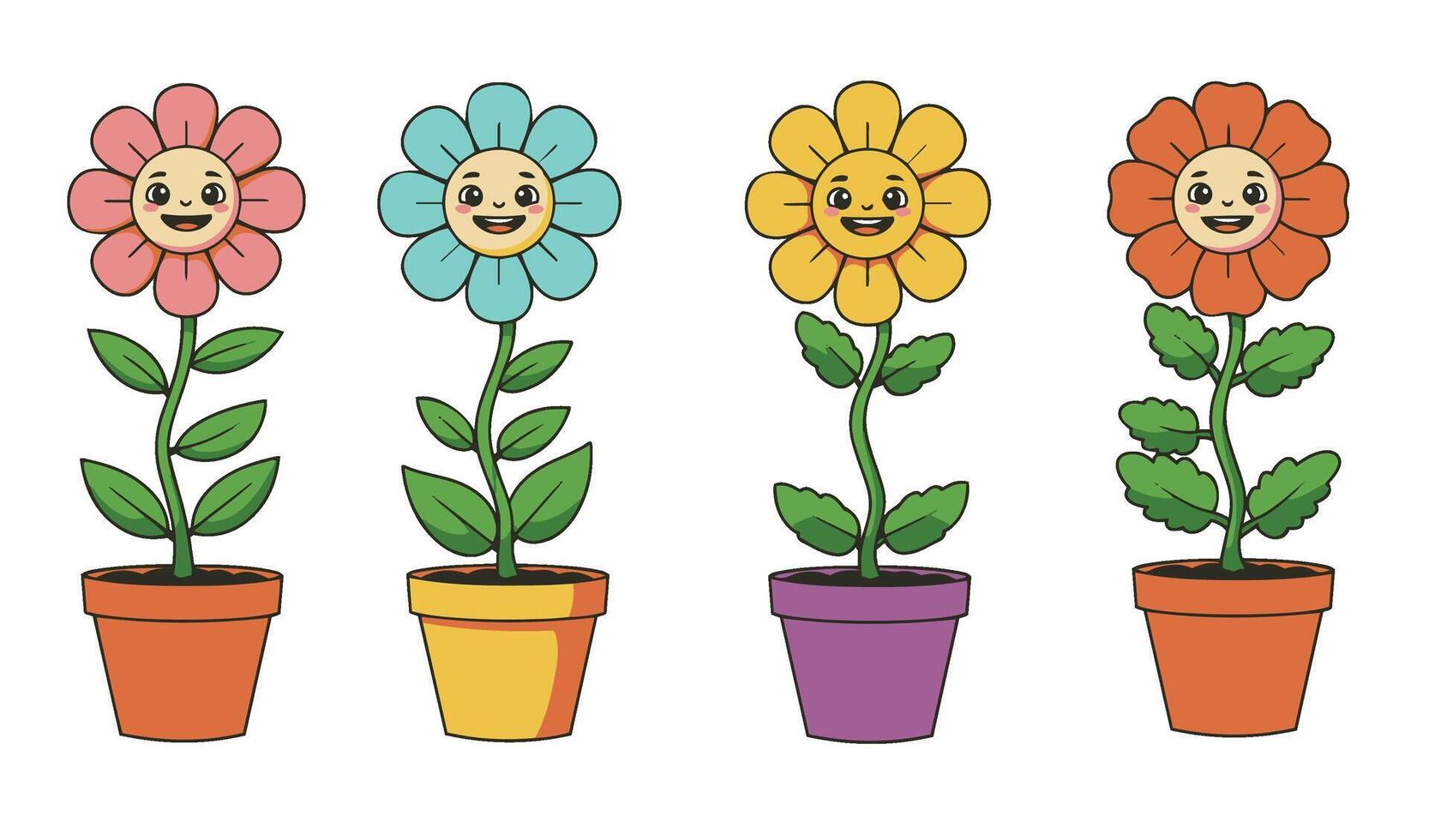 Charming and Lovely Illustration of a Smiling Flower in a Pot Set with Hand-Drawn Style Elements Pro Vector