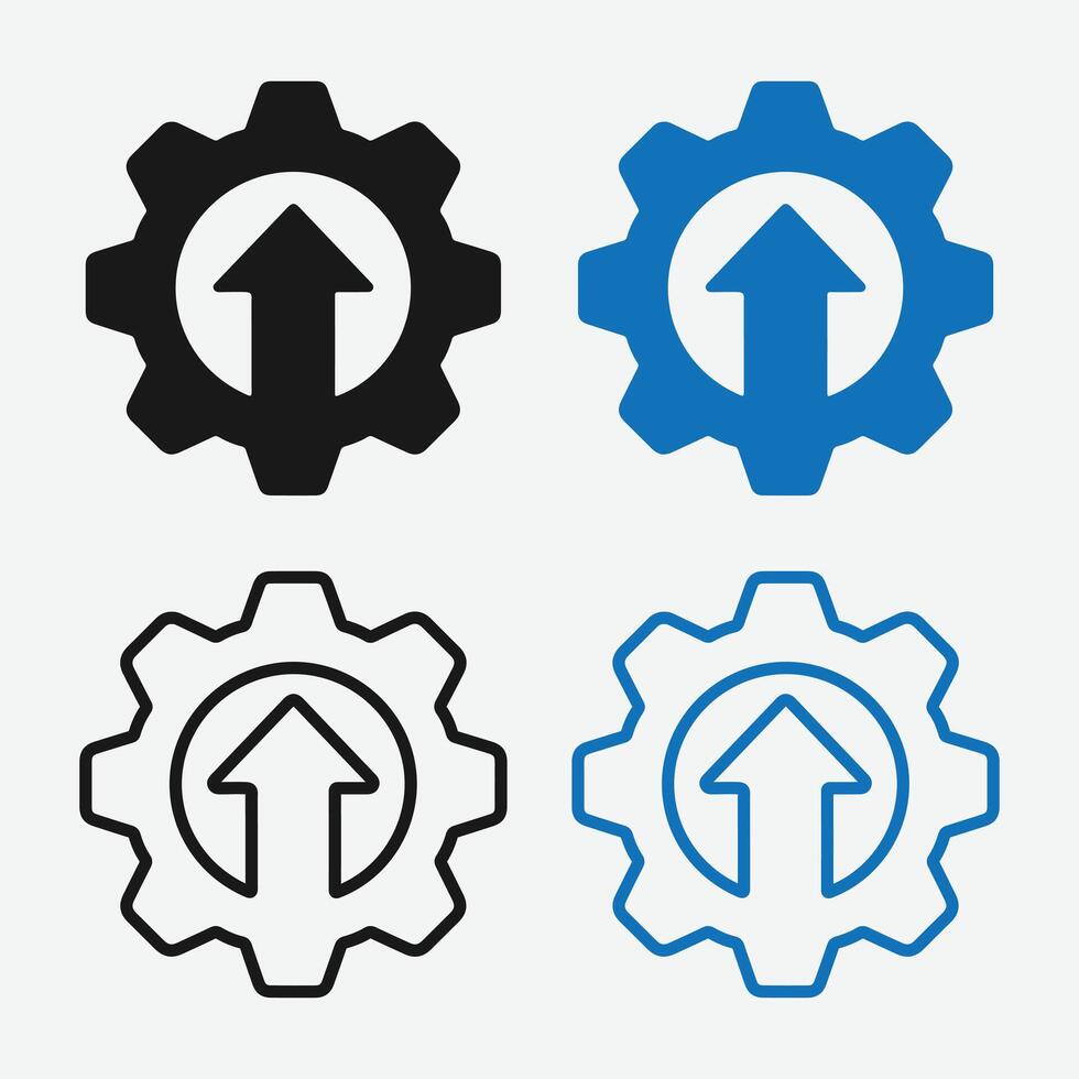 Upload Settings Icons. Cloud Upload Configuration Symbols. Upload Gear Adjustment Icons. Pro Vector