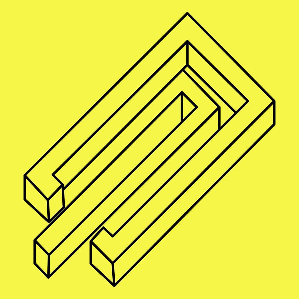 Impossible shapes. Optical illusion. Abstract eternal geometric object. Impossible endless outline. Impossible geometry figure on a yellow background. Pro Vector