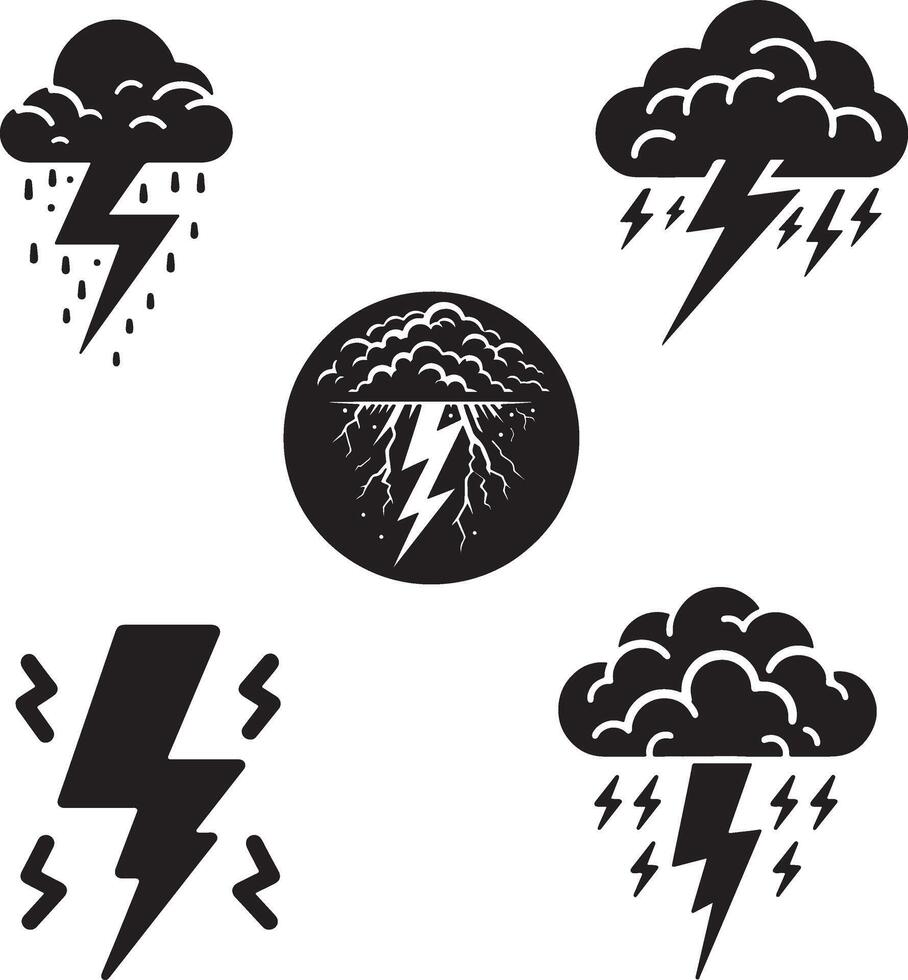 Four different icons of lightning, thunder and clouds vector