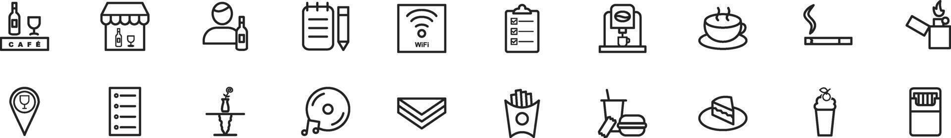 Cafe and Bar line icon, set of a Cafe and Bar. Cafe and Bar icons set 25 icons of a set of icons for web. Pro Vector