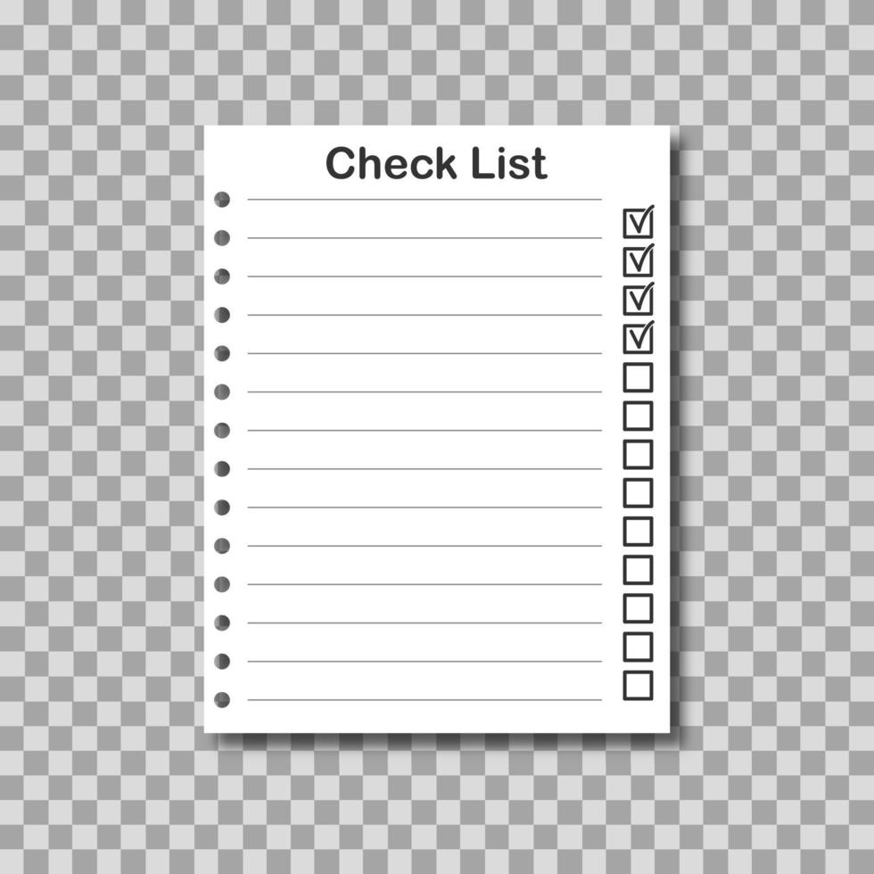 Realistic checklist on transparent background. Realistic white paper with checkmark Pro Vector